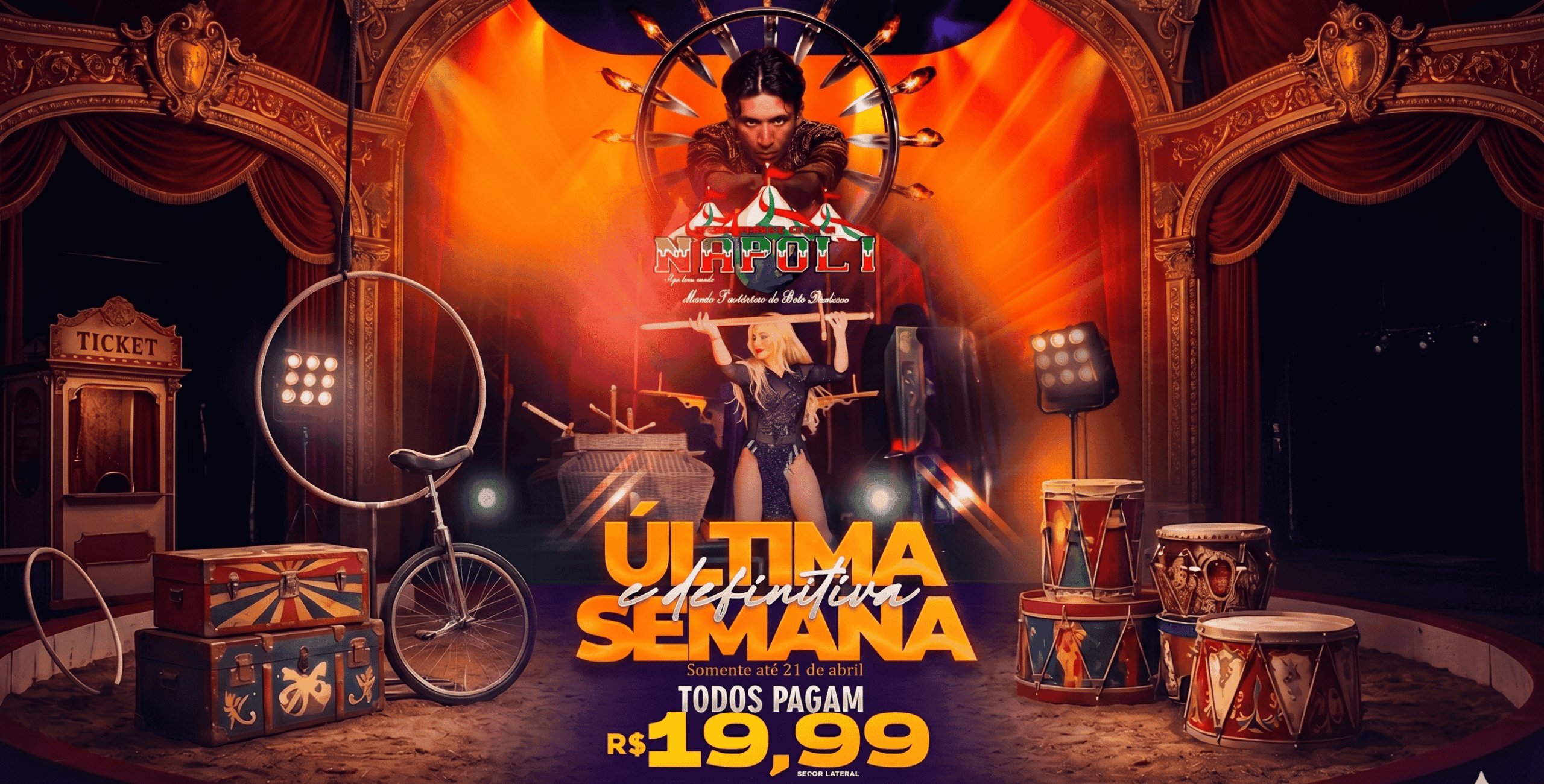 Respire fundo… O Circo Di Napoli está chegou, e com ele, uma aventura emocionante que vai mexer com suas emoções. Prepare-se para se encantar com um espetáculo cheio de surpresas, onde o mistério e a diversão se encontram a cada momento!